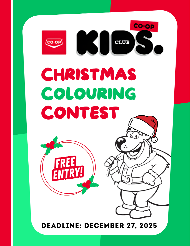 Pick up a Christmas colouring page at any Cornerstone Co-op location by visiting the Customer Service Desk, or print one at home using the link below! We have two festive colouring pages available, feel free to complete one or both.